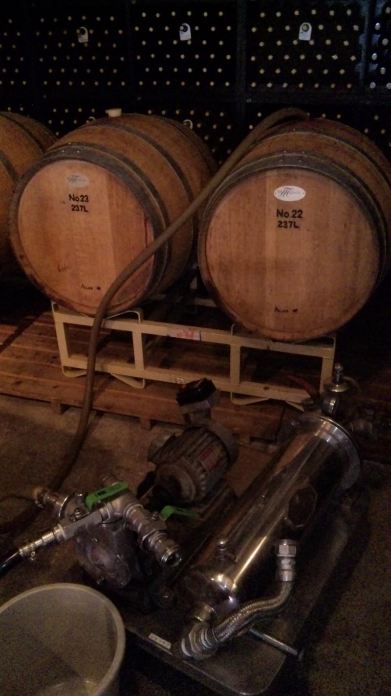 赤ワイン用のぶどう品種メルロ100%で造ったワインば、今日樽から出す作業を行いました。フレンチオーク樽で、けっこう寝かせたワインだっし。この樽、古樽をもう一度新樽に近い感じに再生したものです(中を削り再トースト)。やはり新樽らしい香ばしさは出ねっけなぁ… ちょっと残念(T_T)
