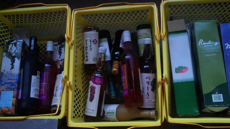 ここら辺の小売店などの状況を見に行ったら、やはり被害が大きかったようです。やはりワインは瓶物なので、けっこう割れたという店も。画像はある店の、割んにぇがったげんと、他の割れたワインの液がボトルやラベルさ付着して交換さんなねぐなった商品。