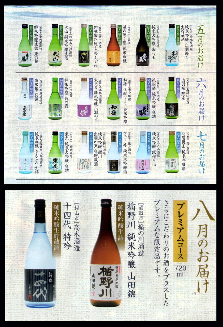 全ての頒布酒が「純米吟醸の生酒」で5月から7月まで毎月300mLを6銘柄お届けします。