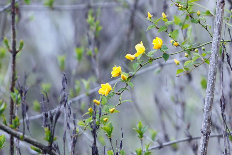 ▼ヤマブキ(山吹)が咲き始めた。