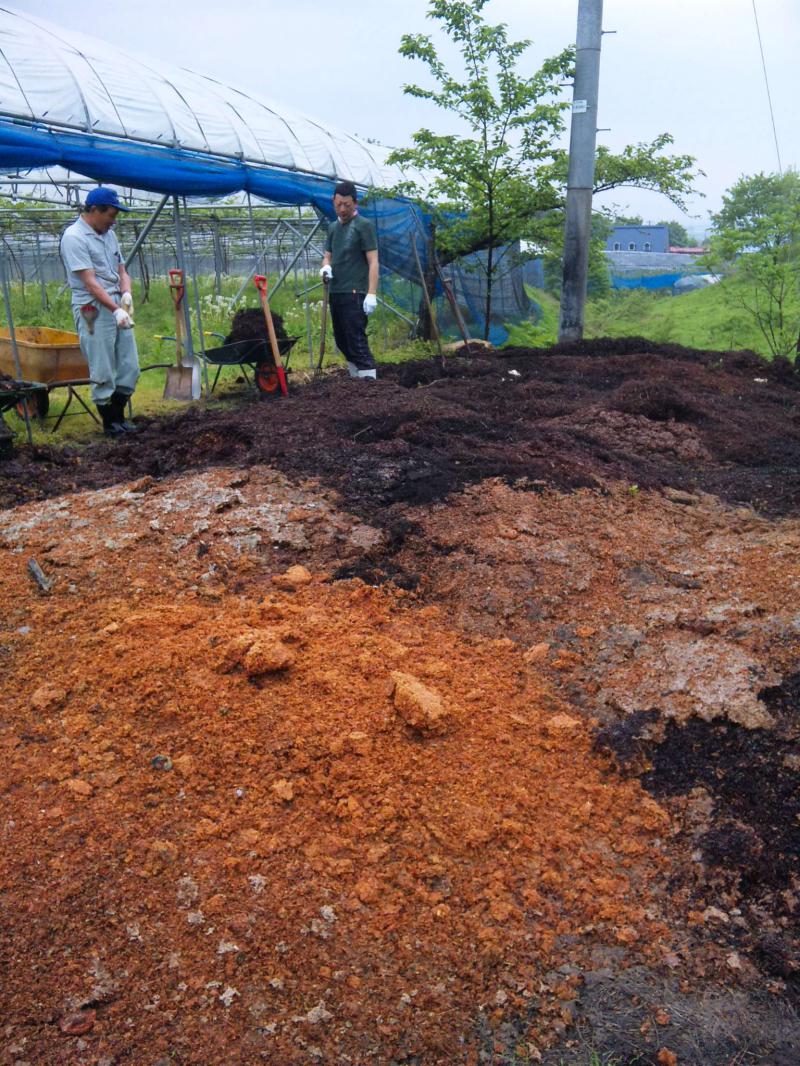 ワインやジュースを造る上で必ず出る搾りカスをぶどう畑に蒔く作業を行いました。捨てる場所をお借りしている農園さんのぶどう畑に、一輪車で運んで蒔きます。一年分なのでかなりの量だげんと、畑の堆肥として使用してます。