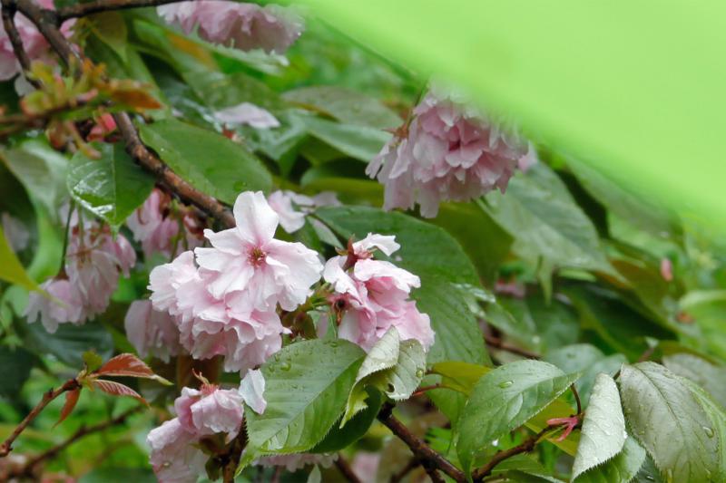 タ―プの脇には、雪折れしたヤマザクラが「花盛り…やや過ぎ(!?)」でしっかり咲いていた。