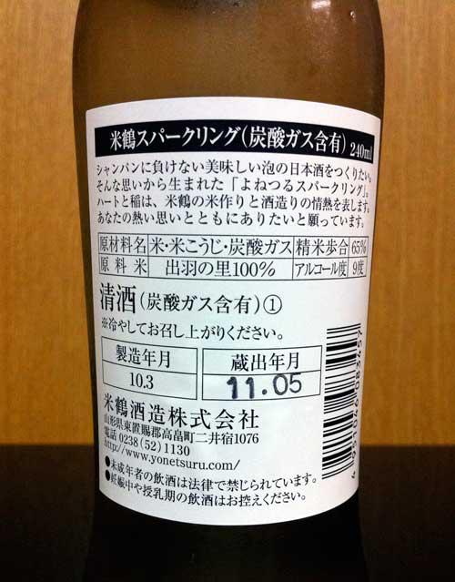 ▼米鶴酒造《米鶴スパークリング》高畠町
