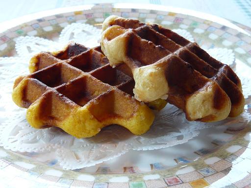 そこで以前から店内でデザートとして出していた、ベルギー風のワッフルにこの野菜を混ぜてここでは、カボチャとオニオンの2種類を焼いてみました。