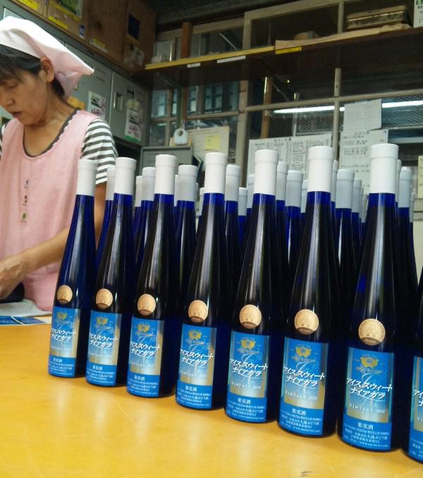 新商品のご案内です。本日より『アイススウィートナイアガラ』を発売致しました。凍ったナイアガラを搾り、ポタポタとしか出でこねシャーベット状の甘い果汁を更に凍らせて、余分な水分を除去し濃厚で蜜のような糖度30度以上の果汁を発酵させて造りました。ナイアガラの芳香と甘味がより凝縮した感じの極甘口タイプのデザートワイン。オシャレなブルーモーゼルボトルさ入って2,100円で販売します(クリアカートン入)。今年の国産ワインコンクール極甘口部門で銅賞を頂きました。是非どうぞっし。