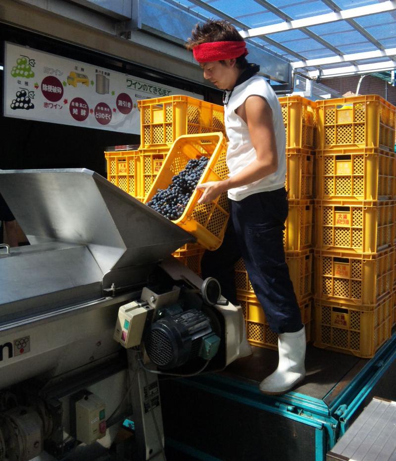 昨日収穫したベリー・アリカントAでワイン仕込みをしました。今年の『赤湯ヌーヴォー(赤)』さなります。今日は約3トンのアリカントを破砕し、タンクさ送って酒母を入れるまでの作業。明日から発酵中は入念に櫂を入れ、濃厚かつフレッシュなヌーヴォーに仕上げます。