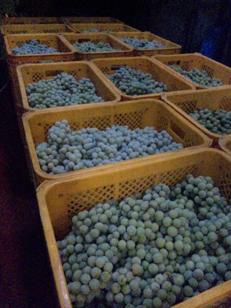 9月の中旬より約三ヶ月冷凍倉庫に入れていたぶどう(ナイアガラ)を出してきました。実の部分は石みだぐガンガン凍ってます。少し溶かして、これから今年最後の氷果ワイン仕込みを行ないます。本当はもっと早くしっちぇがったげんと、忙しくてこの暮れの時期になってしまいました。年内に終わっぺが…