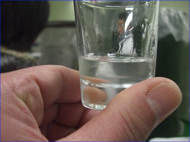 画像は搾りの最中に汲み出して頂いた本醸造の原酒、とても搾りたてとは思えない優れた香味バランスに唸る。