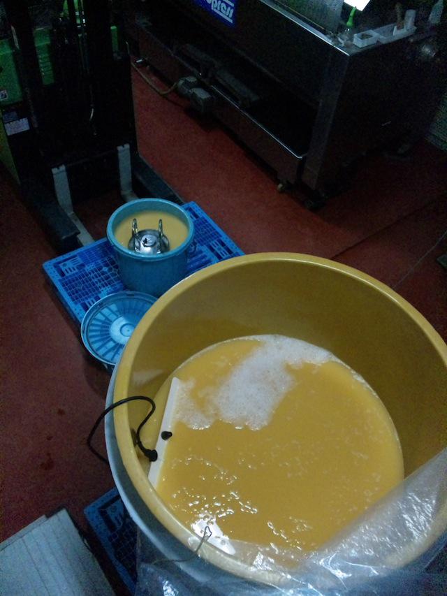 かなり働いた連休中の仕事の疲れがドッと溜まってます… んだげんと連休明け1日目の今日は、リンゴワインの仕込みを行ないました。フジリンゴの甘い風味漂う果汁と酒母をタンクに入れ、発酵させる準備です。順調に発酵させて、リンゴの特長をきれいに出したフルーティーなワインに仕上げます。