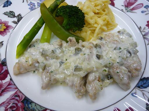 2・鶏肉のソテー、ピクルスとサワークリームソース(写真)