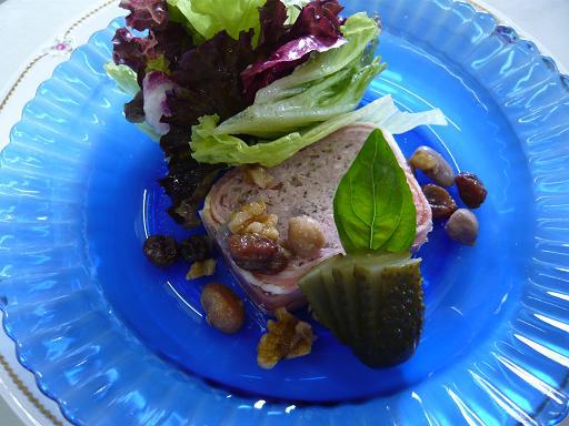 上の写真は肉系のテリーヌ。それの付け合せにレタスに特別に作ってもらってるトレヴィスと言う赤と白色の混ざったレタスのような、
