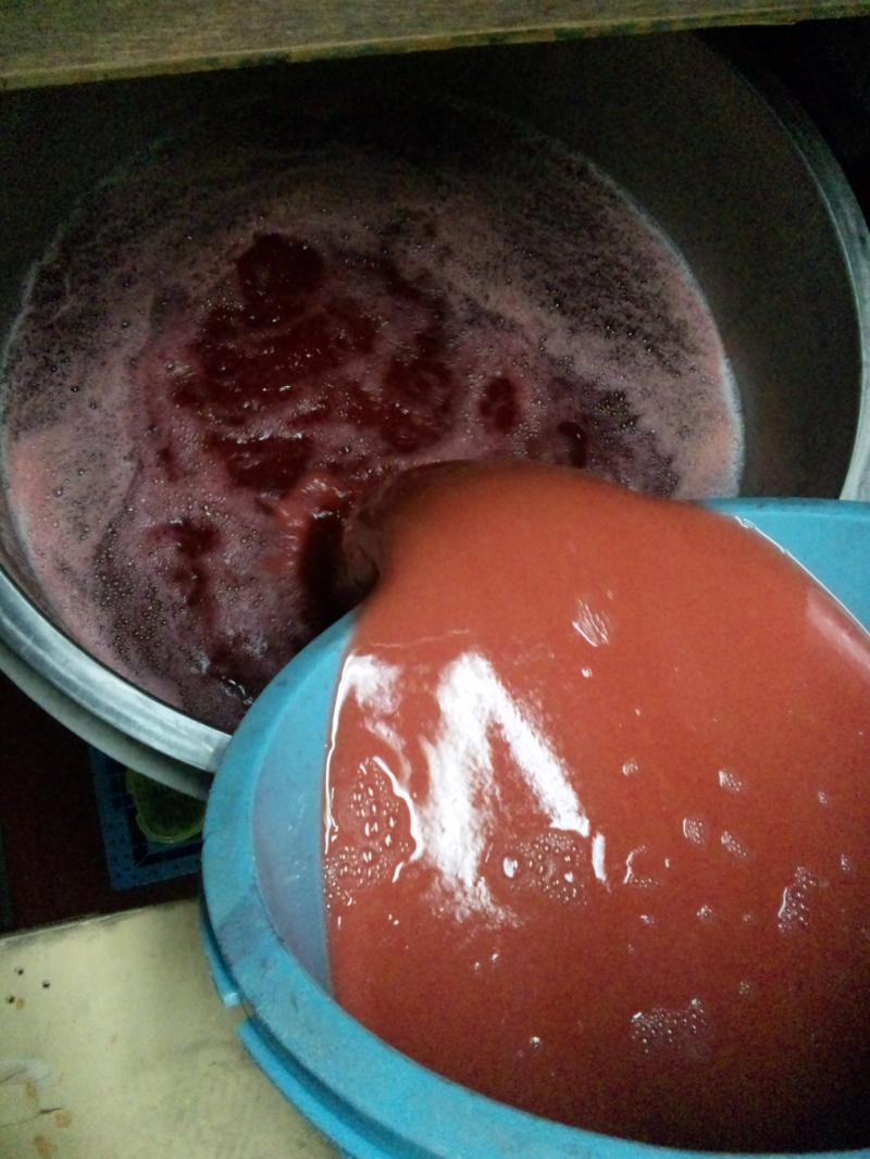 やはりすももなので、強めの酸味があります。ぶどうのレベルだと自生種の山葡萄級。発酵が進んで辛くなってしまうと、物凄くすっかいワインになるので、甘味と酸味のバランスに気をつけて、毎日低温でゆっくり発酵させます。