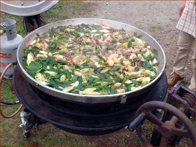 横にあるガスボンベと比べれば如何に巨大な鍋であるかはお解り頂けるでしょう。