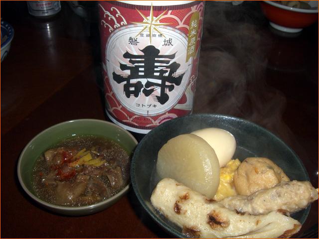 そんな心理を見透かしたかのような昨夜の献立、おでんに牛すじ煮込みとくれば酒はやっぱりこれでしょう。
