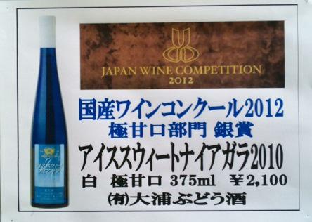 今年の国産ワインコンクール極甘口部門で銀賞受賞致しました『アイススウィートナイアガラ2010』が完売致しました。凍った果実を搾り凍った果汁から造ったワインですので、もともとの本数も少ない為、この度品切れになり申し訳ございません。3月頃から新ヴィンテージで発売再開します。