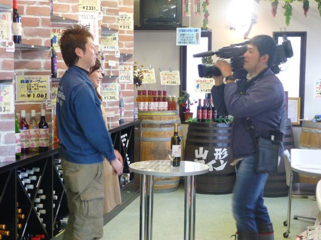 今、『山形おきたま冬のあった回廊キャンペーン』という企画の中で酒蔵、ワイナリーめぐりスタンプラリーを実施してます。と言うわけで、その宣伝の為テレビ出演の依頼があり、引き受ける事になりました。昨日、地元ケーブルテレビのNCVさんご来社。ワインセラーとショップで撮影して、ワインの説明や特典の紹介をしました。何とか喋ったげんと、以前テレビさ出た時にあんまり訛り過ぎて標準語の字幕が入ったこともあるので、ちょっと心配だっし。ちなみに16日(水)の『9ちゃんニュース』の中で放送される予定。