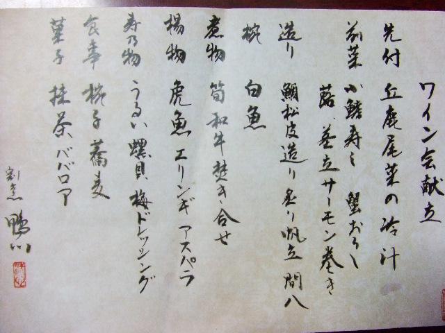川西町にある 「老舗割烹料理 鴨川」さんのお座敷にて、ワイン会をさせていただきました。