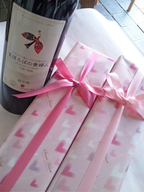 旦那様の気持ちを伝えるような、たくさんのハートが飛び交う、ピンクのラッピング用紙でラッピングさせていただきました!(^^)!