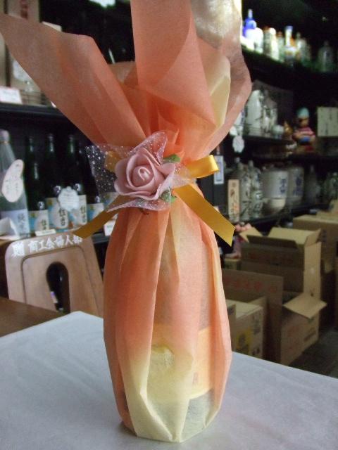 ワインボトルを箱に入れずに、不織布でラッピングしました。