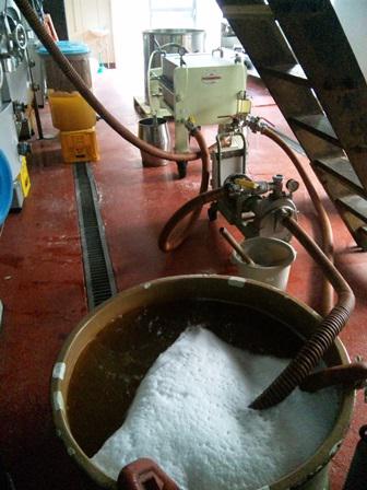 先日澱引きした、『赤湯ヌーヴォー(白)』になるデラウェアーの甘口ワインを粗濾過を行いました。濁りが強い為毎年この新酒ワイン用の粗濾過は難儀すっけど、今年は比較的スムーズに行きました。
