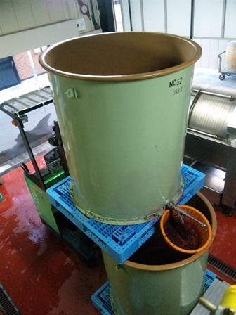 委託で造っている山葡萄のワインだげんと、今引き抜き作業をしてます。フォークリフトで醪の入っているタンクを上げて、自然の重力に任せて吞み口から、下のタンクへザルで濾しながらワインを垂らしてます。小ロットでフォークリフトで上げれるタンクは、こうやってます。