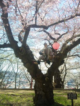 今日はおらいが当番で桜まつりの物産コーナーで販売。暑いくらいの天気で、花見客で烏帽子山は賑わいました。今年の桜はきれいに咲いて、花咲かじいさんもご満悦の様子。