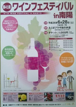 えくぼプラザ(中央公民館)前の歩道で、6月28日(土)PM4〜PM7、ワインフェスティバルを開催致します。チケットは1,000円です(100円券が10枚綴りになったもの)。ワインは種類によってチケットの枚数が違い、赤湯4社のワインが多数味わえます。