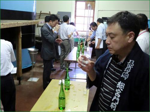 七夕の夜に美味しい日本酒を飲んでもらおうと企画して12年目を向かえた限定酒「ささのはさらさら」。今年もその‘呑み切り’が6月11日に米鶴の蔵で行われました。開催蔵の「まほろばの酒蔵 米鶴酒造」には山形県内全域の名門酒会加盟店、そして遠くは秋田からも同士が掛け付けて。山形を代表する名杜氏、須貝 智氏が我々の為にリストアップしてくれた6アイテムがズラリと並ぶ。全品に共通する酒質の高さは流石の一言。先頃発表があった全国新酒鑑評会でも見事連続金賞に輝いた技術力を感じる美酒揃い。そんな中から一点を選ぶ条件は‘夏の七夕の夜に最適な酒’、約一ヵ月先の熟度をイメージしながらのティステイングです。さて二次審査の投票を経て決定した今年の選定酒は出羽の里というお米で醸された純米吟醸酒。梅津社長と須貝杜氏に挟まれてやや緊張ぎみの酒屋おやじ。^^お二人の笑顔は最高ですね。今回のお酒は香り仄かで爽やかな風味と水蜜桃のような透明感のある甘味が秀逸な美酒です。さらさらと喉を通って行く軽快感と涼感がお楽しみ頂けますよ。夜空に掛かる天の川を見上げてこの酒で乾杯できれば最高ですね。(^^♪ご予約はこちらから最後は当日、お蔵の会議室の窓から撮った酒米「亀の尾」の田圃です。一週間程前に田植えのイベントがあって参加者が植えられたのだとか。手前に立てられた木札には植えられた方のお名前が書かれてあって秋には稲刈りで集まるとの事。お蔵のすぐ側に自社の田圃があるという米鶴蔵。緑豊かな恵まれた立地環境で理想の酒造りをしています。Facebookに沢山の画像をUPしました。←クリック