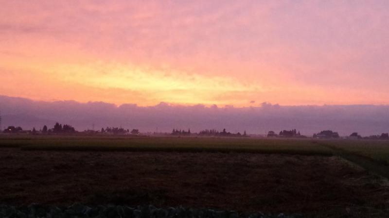 朝早く 車を走らせていると、ちょうど東の空がパーッと明るくなり綺麗な朝焼けが見られました(*^。^*)