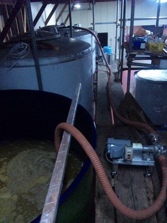 タンクの下部に分離した澱が沈んでます。丁寧に澱を取り除き、アロマに優れたぶどうなのできれいな酒質の甘口ワインに仕上げます。