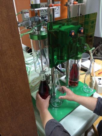 今週日曜日に行われる『山形ヴァンダジェ』に向けて、今日は当日持参する『オオウラスパークリング沙蘭(ロゼ)』の瓶詰めを行いました。