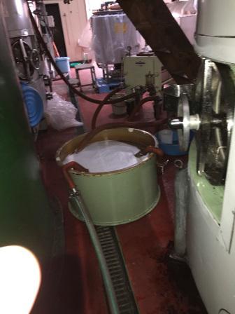 デラウェアの仕込みが一段落して、お盆前に仕込んだワインの粗濾過作業です。今年の「赤湯ヌーヴォー(白)」になるタンクから始めています。呑み口を開けるとデラの甘い香りが蔵の中に漂います。今度は仕上げ濾過をして瓶詰めに移ります。