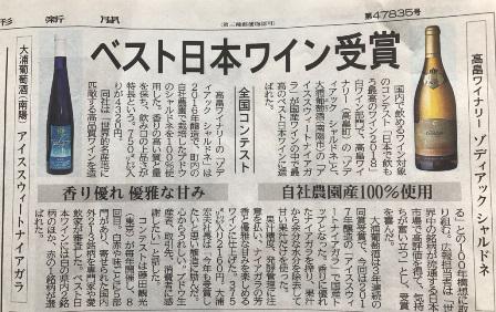 今回3年連続ベスト日本ワインを受賞致しました「日本で飲もう最高のワイン2018」の記事が山形新聞に掲載されました。
