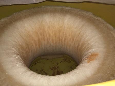先日搾ったスチューベンの果汁を凍らせ、目標の糖度まで上がったので濃縮した果汁を違うタンクへ移しました。水分が凍った分は勿体ないですが、お湯を掛けて溶かして流します。