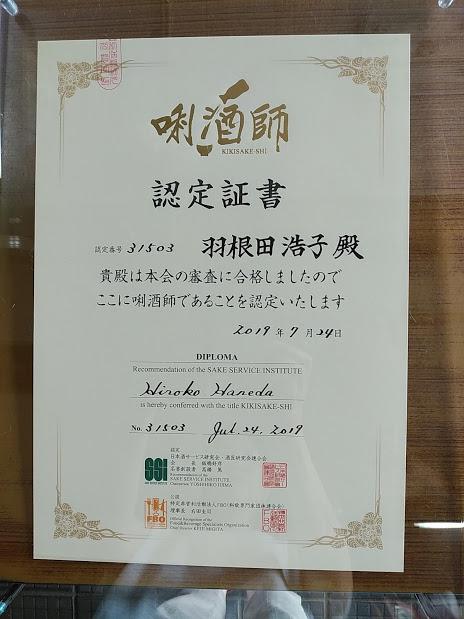 晴れて「日本酒ソムリエ・きき酒師」「日本酒品質管理師」の資格を取ることができました。