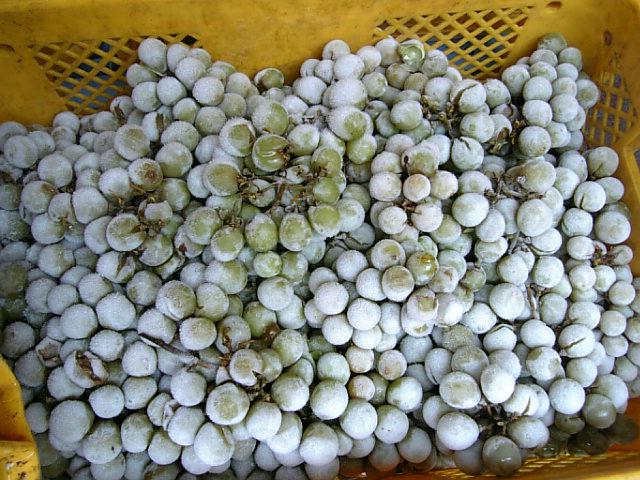 9月中旬に収穫し、冷凍保存して寒い12月に毎年仕込んでます。そして春に『アイスナイアガラ』として出荷してます。