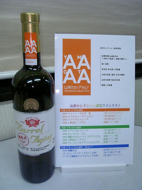 昨年の12月に山形セレクションの認定を受けたおらいの『バレルエージング(ブラン)2005』。やっと山形セレクションのシールが出来上がって、ボトルに貼って販売出来るようになりました。だいだい色のステッカーの中に、このワインに与えられた認定番号が記載されてます。
