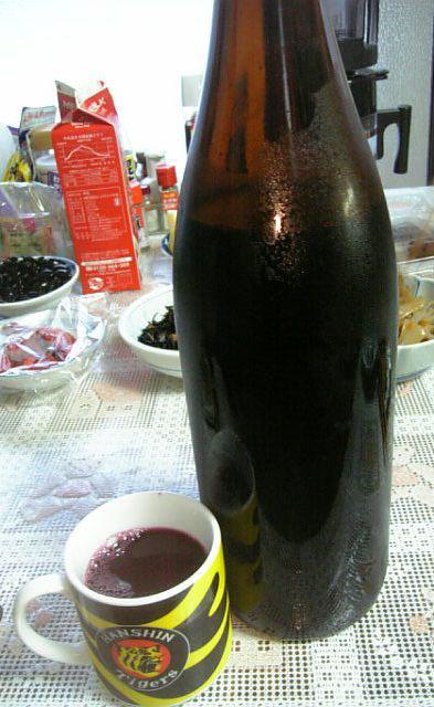 おらのお気に入りとして、毎朝かかさず飲んでいるのが、うちで搾ってるマスカット・ベリーAのストレートジュース(原液)。おらいの商品で『ぶどう原液(赤)』というのがありますが、そのベースになってる一次加工(搾っただけ)の一升瓶のものです。しかも、虎キチなので阪神タイガースのマグカップで飲むのが乙。