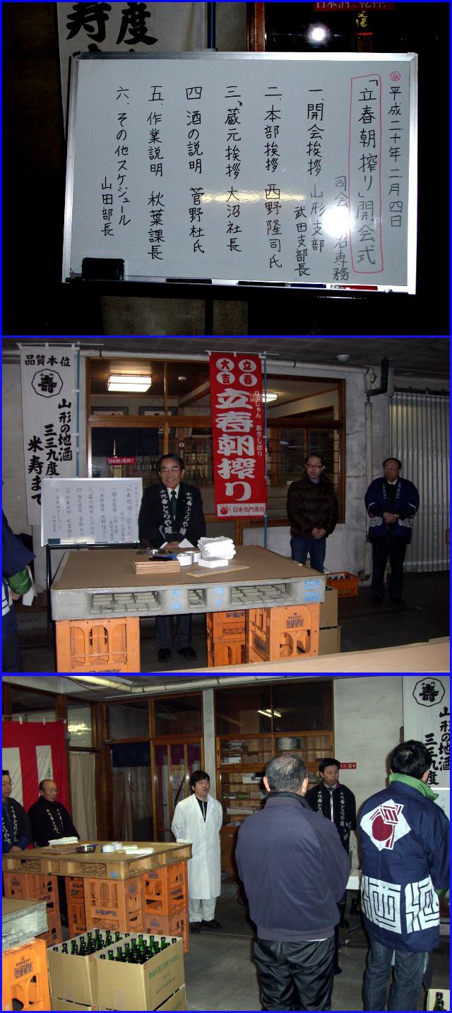 皆を迎える蔵元の優しい眼差し、責任を果たし安堵の表情の杜氏、立春の酒蔵の朝は6年前と変らない。