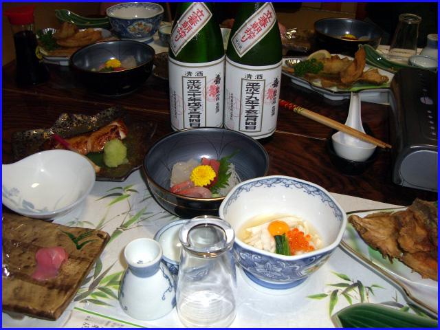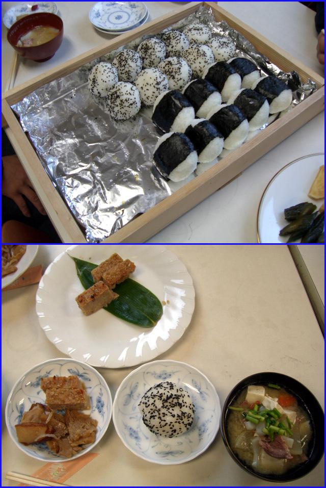 作業後のお楽しみ、酒蔵でご馳走になる「立春朝ご飯」、千代寿蔵の女性陣が毎回手作りしてくれる心尽くしのご馳走です。