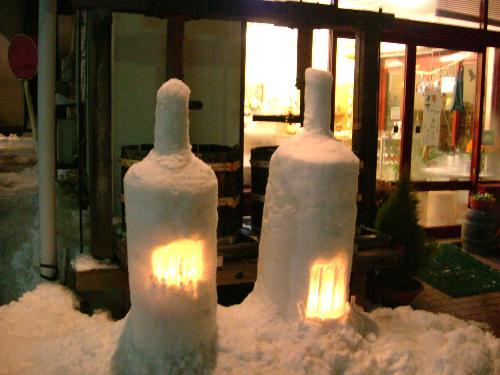 ▼酒井ワイナリーさんのワインの瓶の雪灯篭