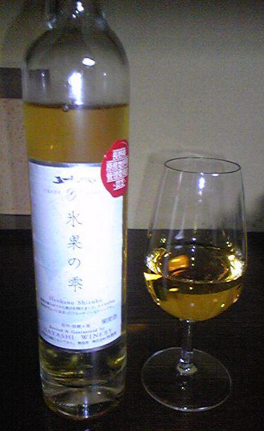 ちょっと贅沢に以前購入した長野県塩尻の五一ワインさんの、凍ったナイアガラで造った『氷果の雫』を夜飲みました(375ml入で、値段はけっこう高かったはず。)。黄金色に輝き、アイスワイン特有の蜂蜜を思わせる濃厚な甘味が何ともたまりませんでした。比重の重いワインなので、余韻も長かったです。デリシャスなワインだっけっし。