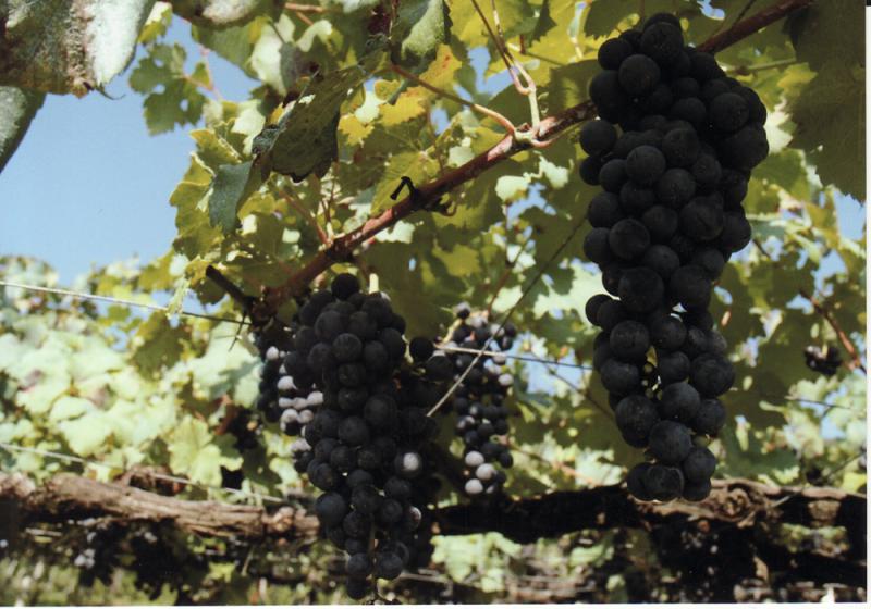 赤ワイン用の高級ブドウ品種カベルネ・ソーヴィニヨン(画像のブドウ)。