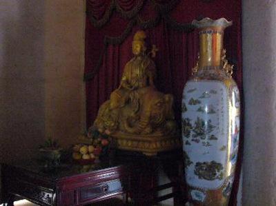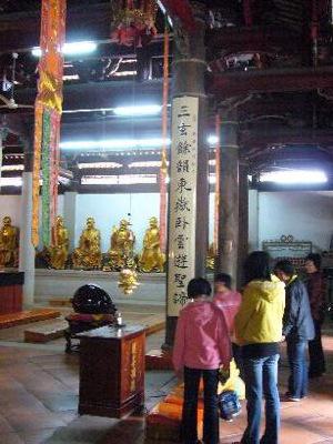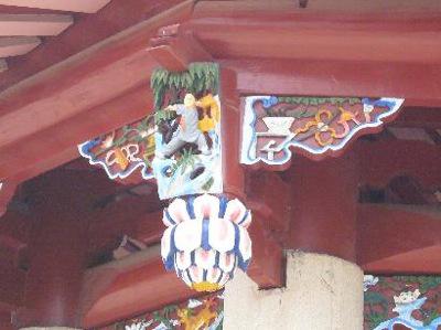 観音閣で占いをしてもらっている女性です。3〜4回も占っているので つい撮ってしまいました。正面のところで膝をついてお祈りしながら小さな竹のようなものを後ろに落とします。それで出たものを横のおじさんに持って行って占ってもらっていました。多分結婚のことだろうって言っていました。どこでも一緒ですね。