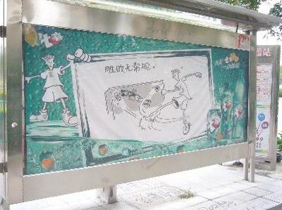 バス停の広告です。サッカーの絵にスプライトです。運動中にはスプライトは無理です。
