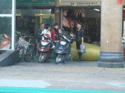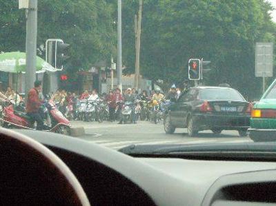 物凄い数のバイクの信号待ちです。中国では半分以上は電動自転車で、音がしないので歩いているときはかなり怖いです。
