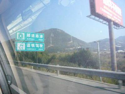 これも岩山です。高速の看板もあります。トンネル内滑るので注意とわき見するなですかね。。