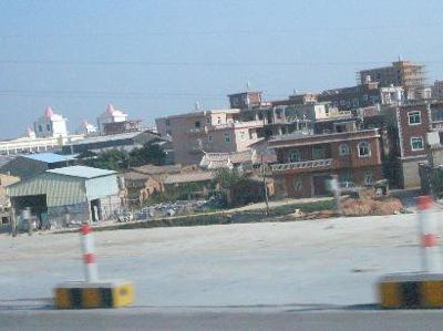 これは向かう途中の高速から撮った小さな村です。それでも近代的な建物に囲まれながらわずかに残った低い屋根の古い建物群がわずかに見えます。どこでもかなり少なくなりました。