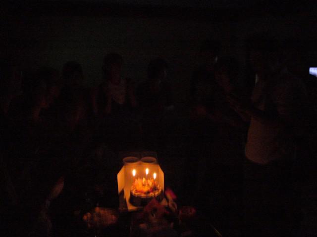 みんなで中国語でハッピィバースデー トウ ユウを歌って3人でケーキにナイフを入れます。
