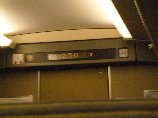 1時間強の乗車時間ですが、海辺で線路も曲がりが多いようで、この間の最高時速は一瞬だけ250キロが出ていました。